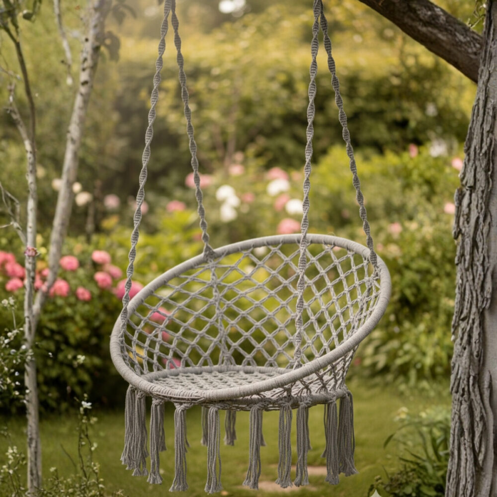 Hamaca Silla Colgante Interior Exterior Macrame Tipo Hamaca Paraguaya de Algodon 120 X 80cm color GRIS
