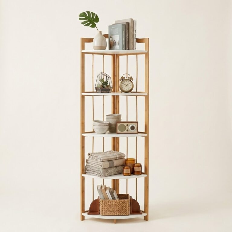Estantería esquinera bambú 5 estantes 130cm Purare Home moderna ahorra espacio