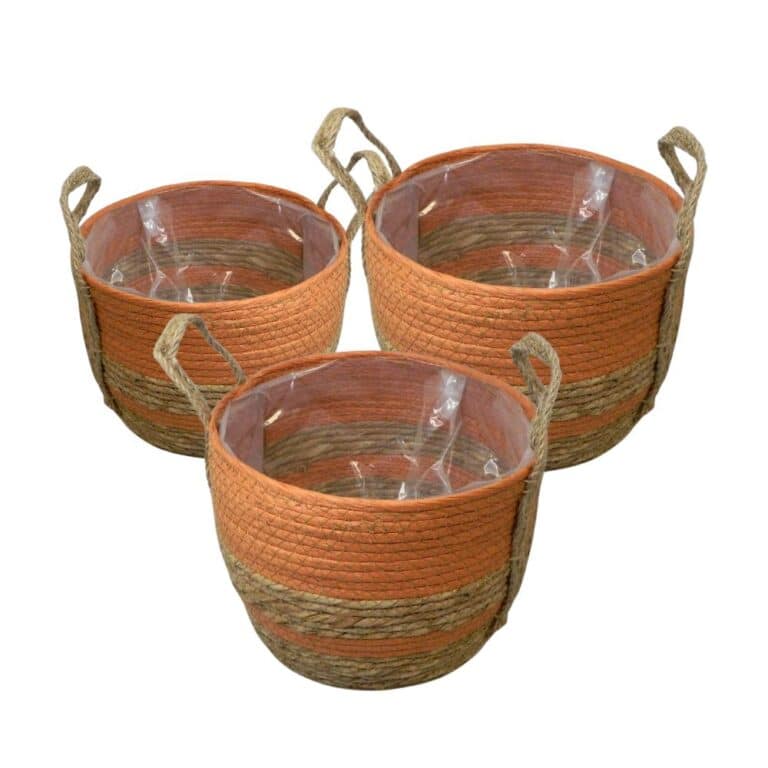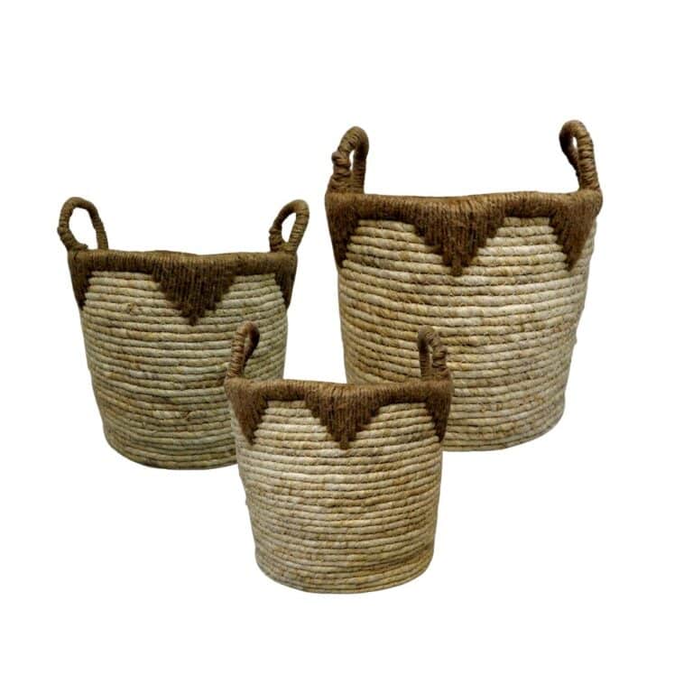 Set de 3 Cestos de Junco Natural con Manijas Elegancia y Organización en Uno