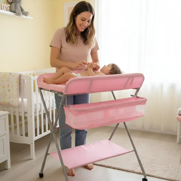 Cambiador de Bebé Plegable con Pañalera Lateral Para Guardado Bandeja Inferior Ajustable en 3 Alturas 100cm Portátil y Resistente Con Ruedas