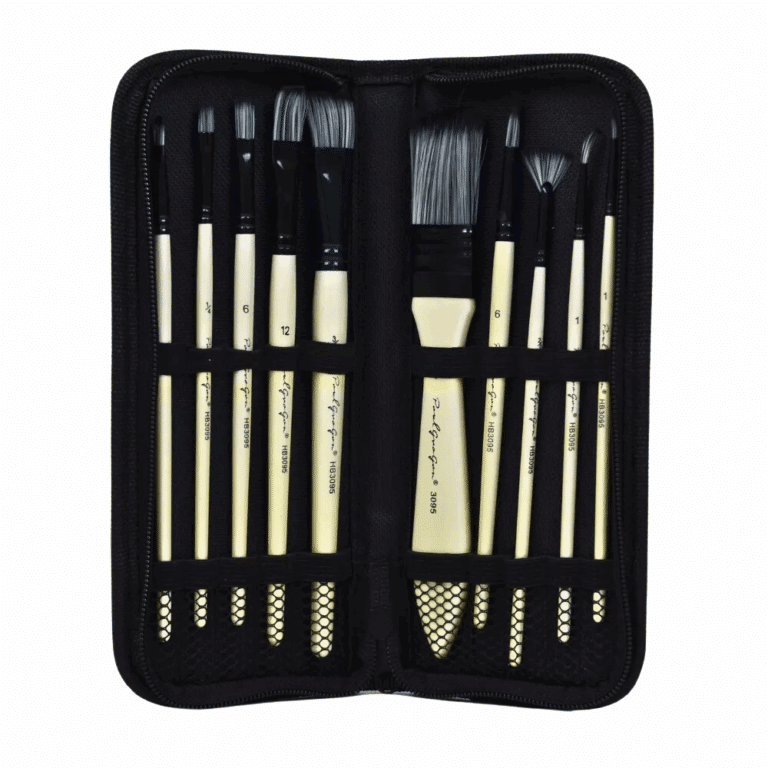 Juego Set De 11 Pinceles Cerdas Nylon Y Madera Diferentes Medidas
