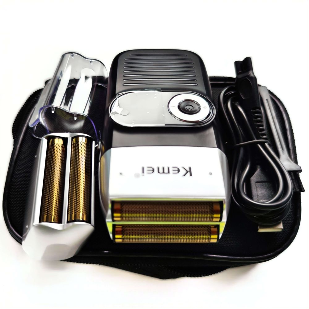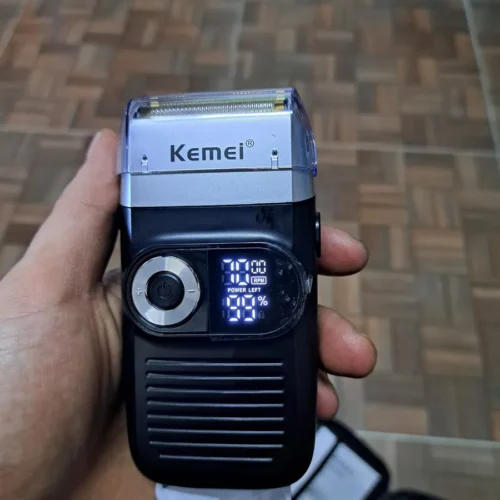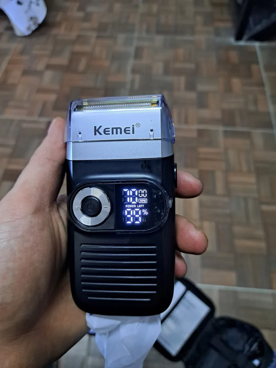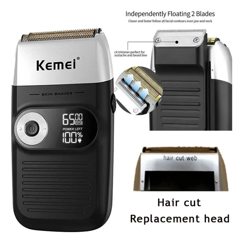 La Afeitadora Kemei Km 2026 Negra Recargable Con Cabezal Triple Y Cuchillas De Acero Inoxidable ofrece un afeitado eficiente y cómodo gracias a su cabezal flotante de tres hojas, que se adapta a los contornos del rostro.