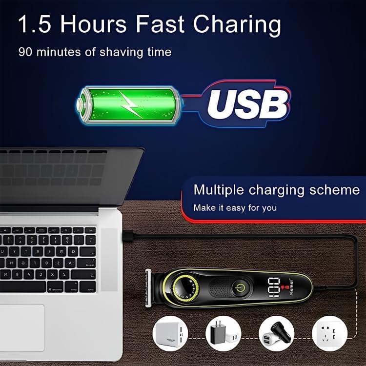 La afeitadora y cortadora de pelo Kemei KM-696 es una herramienta versátil y de alta calidad diseñada para ofrecer excelentes resultados estéticos. Aquí tienes una descripción detallada de sus características: