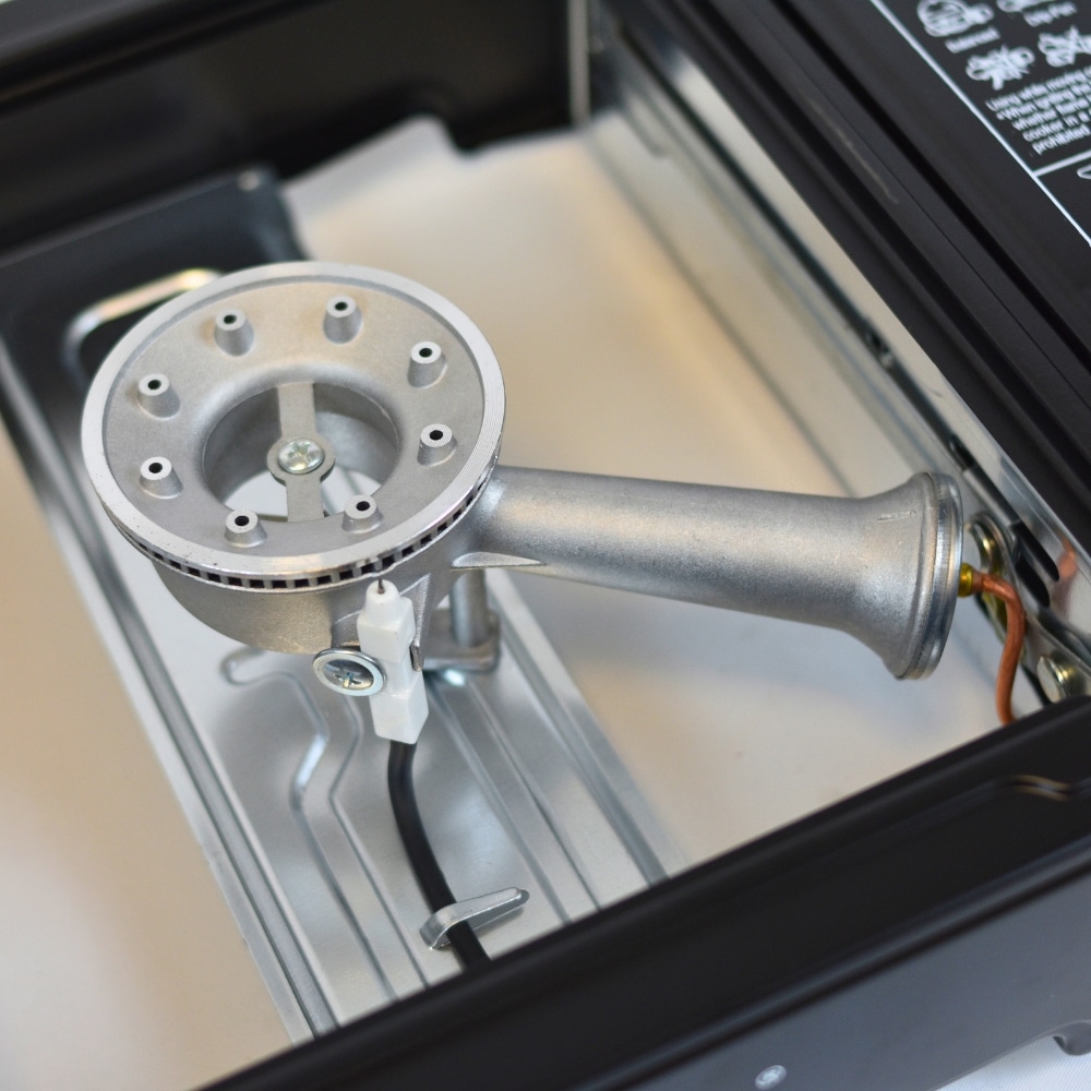 - Regulación de llama: Perilla ajustable para controlar el flujo de gas y la intensidad de la llama.