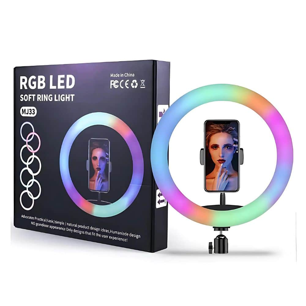 El Aro Led RGB 40CM Con Soporte Triple es una herramienta indispensable para quienes buscan mejorar la iluminación en sus sesiones de fotos, videos o transmisiones en vivo. Con un diámetro de 40 cm, este aro LED ofrece una iluminación RGB de alta calidad, con 20W de potencia, perfecta para iluminar de manera uniforme y sin sombras indeseadas.