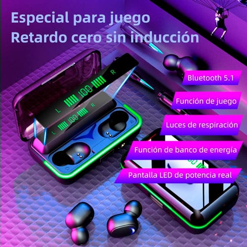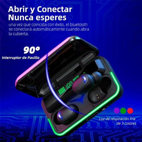 - Su estuche de carga tiene una pantalla LED que muestra el estado de la batería en tiempo real.
