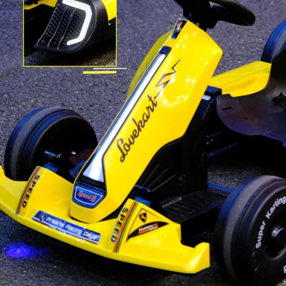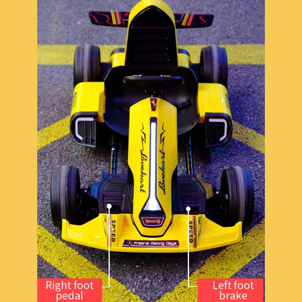 Este kart eléctrico infantil con Bluetooth es perfecto para niños que buscan la emoción de la velocidad y los padres que valoran la seguridad. Con un diseño aerodinámico estilo Fórmula 1, este kart alcanza velocidades de hasta 8 km/h, ideal para mantener la diversión en todo momento. Su estructura es ligera con un peso neto de 16,5 kg y soporta hasta 30 kg de peso.