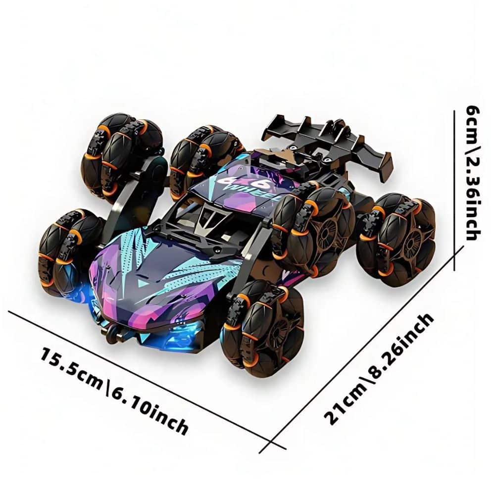 Con sus dimensiones compactas de 21 x 15.5 x 6 cm, este auto es ideal para llevarlo a cualquier lado y disfrutar de horas de diversión. Además, su mando a distancia te garantiza un control total, permitiéndote realizar drift y maniobras espectaculares mientras exploras nuevos terrenos.
