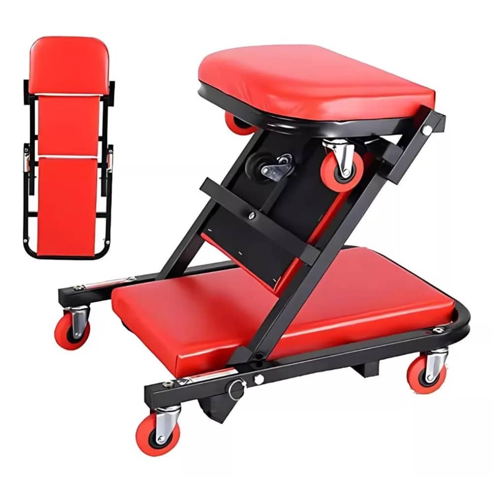 Este banco camilla plegable multiuso es el compañero perfecto para cualquier taller mecánico, brindando comodidad, movilidad y versatilidad en un solo producto.