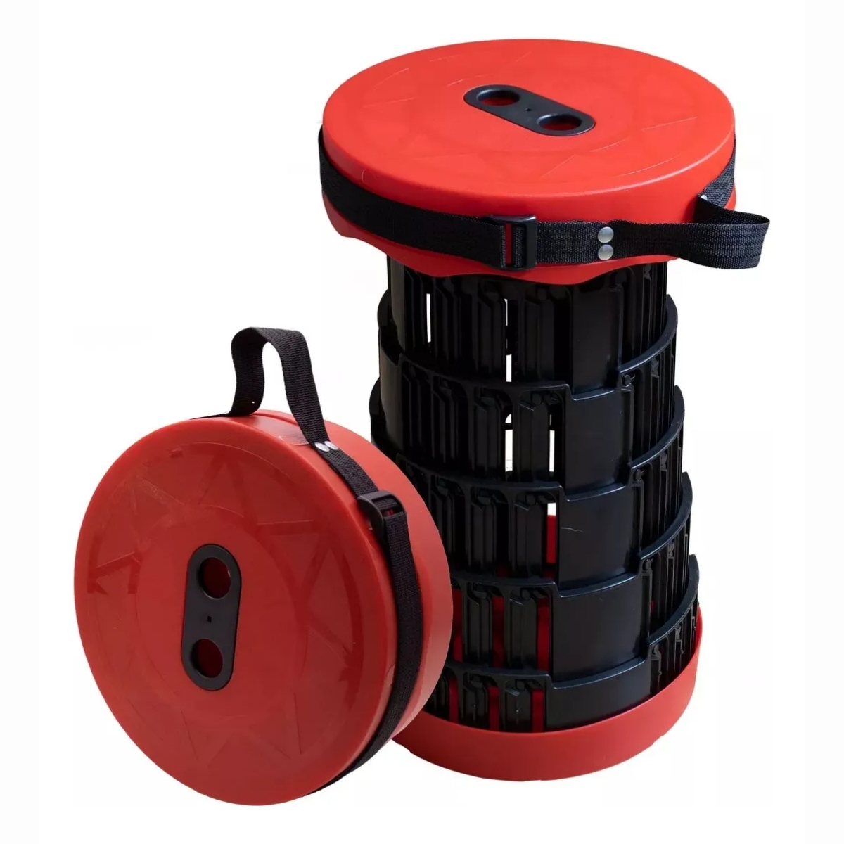 Banco plegable telescopico resistente portatil 44×25 cm ajustable hasta 300 kg ideal para camping, pesca y actividades al aire libre COLOR ROJO