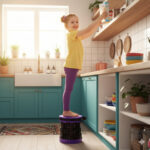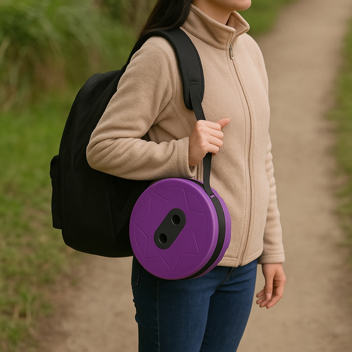 Su diseño telescópico permite ajustar la altura según la necesidad, alcanzando un máximo de 44 cm y un diámetro de 25 cm. Esta característica lo hace extremadamente versátil, ya que puede utilizarse como asiento, banquito auxiliar o apoyo improvisado en cualquier situación.