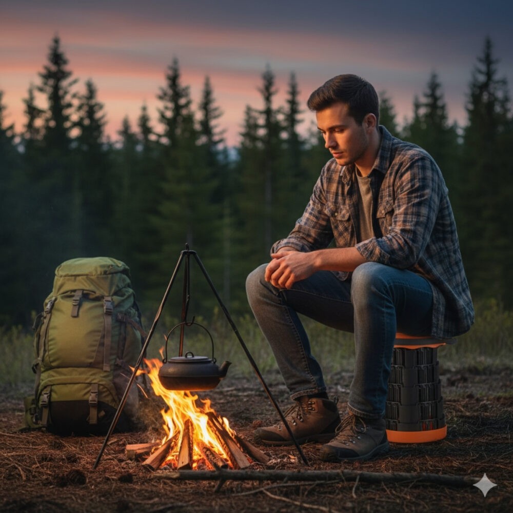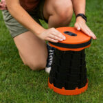 Su diseño telescópico permite ajustar la altura según la necesidad, alcanzando un máximo de 44 cm y un diámetro de 25 cm. Esta característica lo hace extremadamente versátil, ya que puede utilizarse como asiento, banquito auxiliar o apoyo improvisado en cualquier situación.