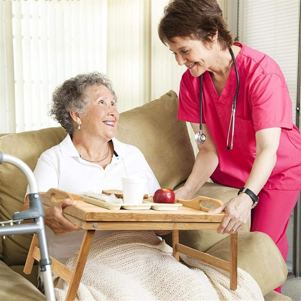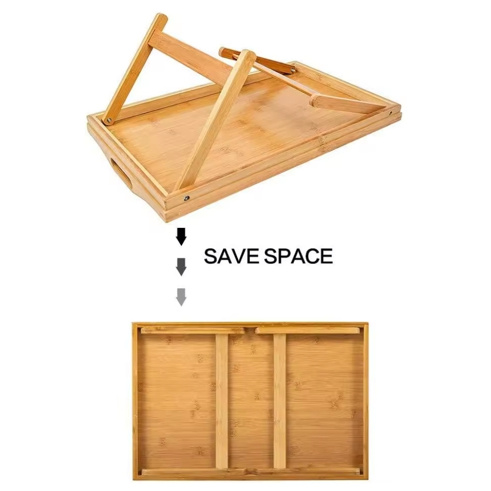 Bandeja de Bambú Plegable para Cama o Sillón 49x30x23 cm con Patas Firmes y Bordes Antiderrame Ideal para Cama o Sillon Comoda Firme Extra Liviana