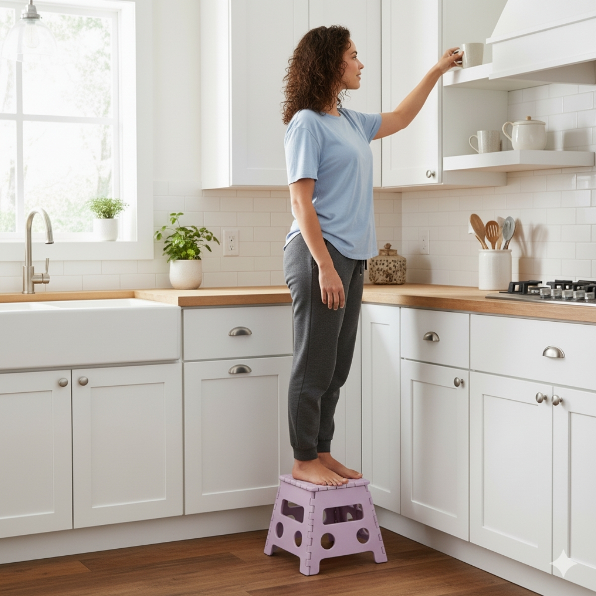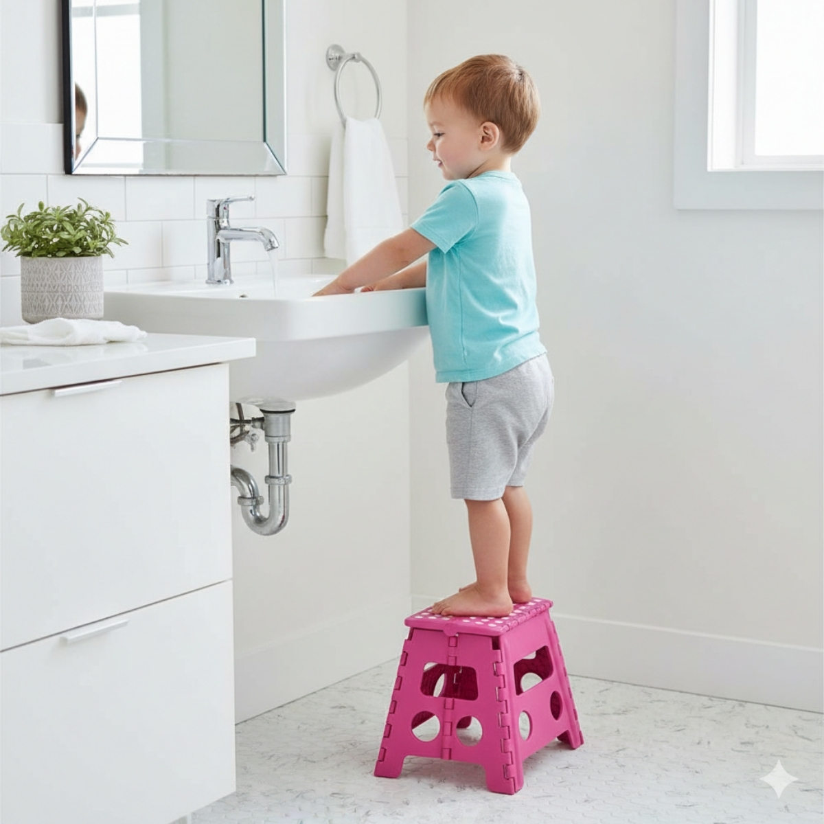 Este modelo color rosa combina resistencia, ligereza y estilo. Es perfecto para mantener siempre a mano en tareas cotidianas, como alcanzar estantes, ayudar a los más chicos a lavarse las manos o utilizarlo como asiento auxiliar.