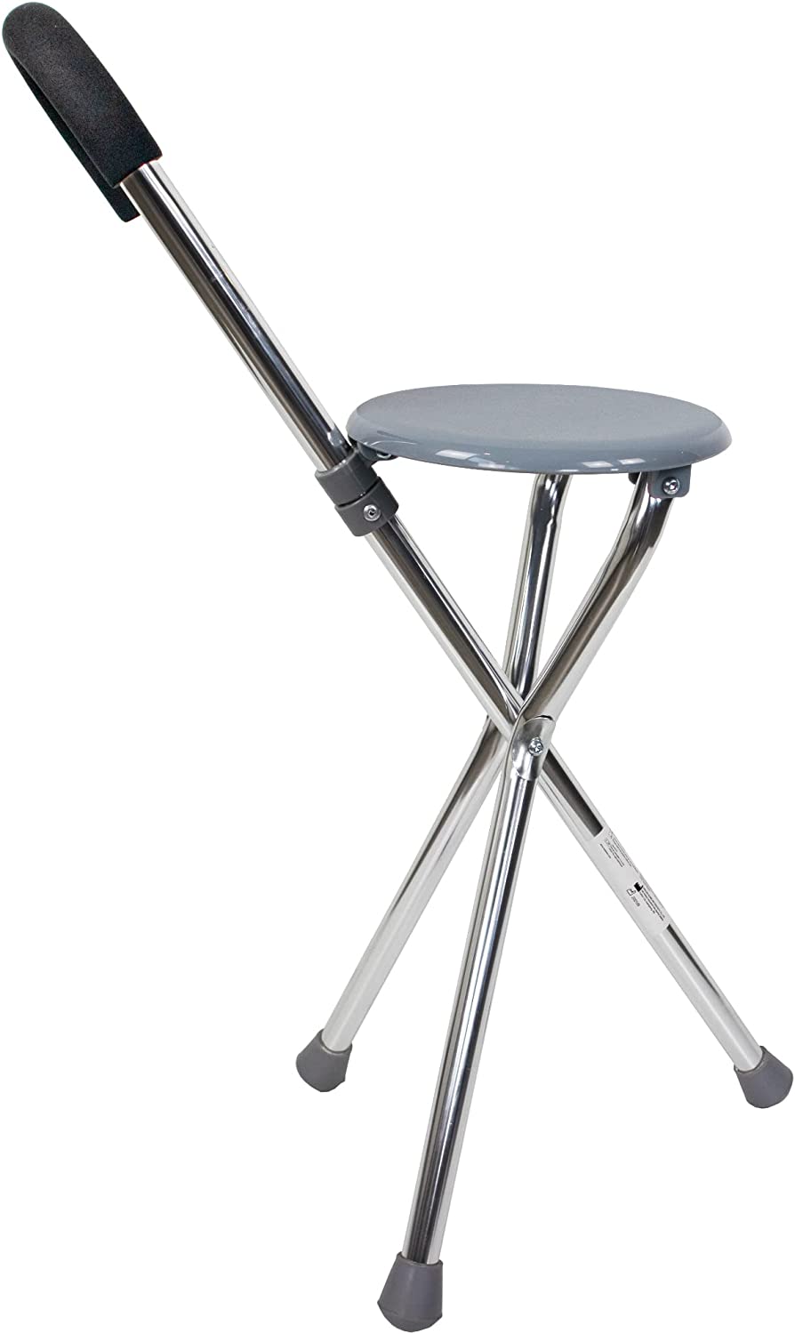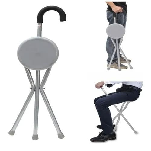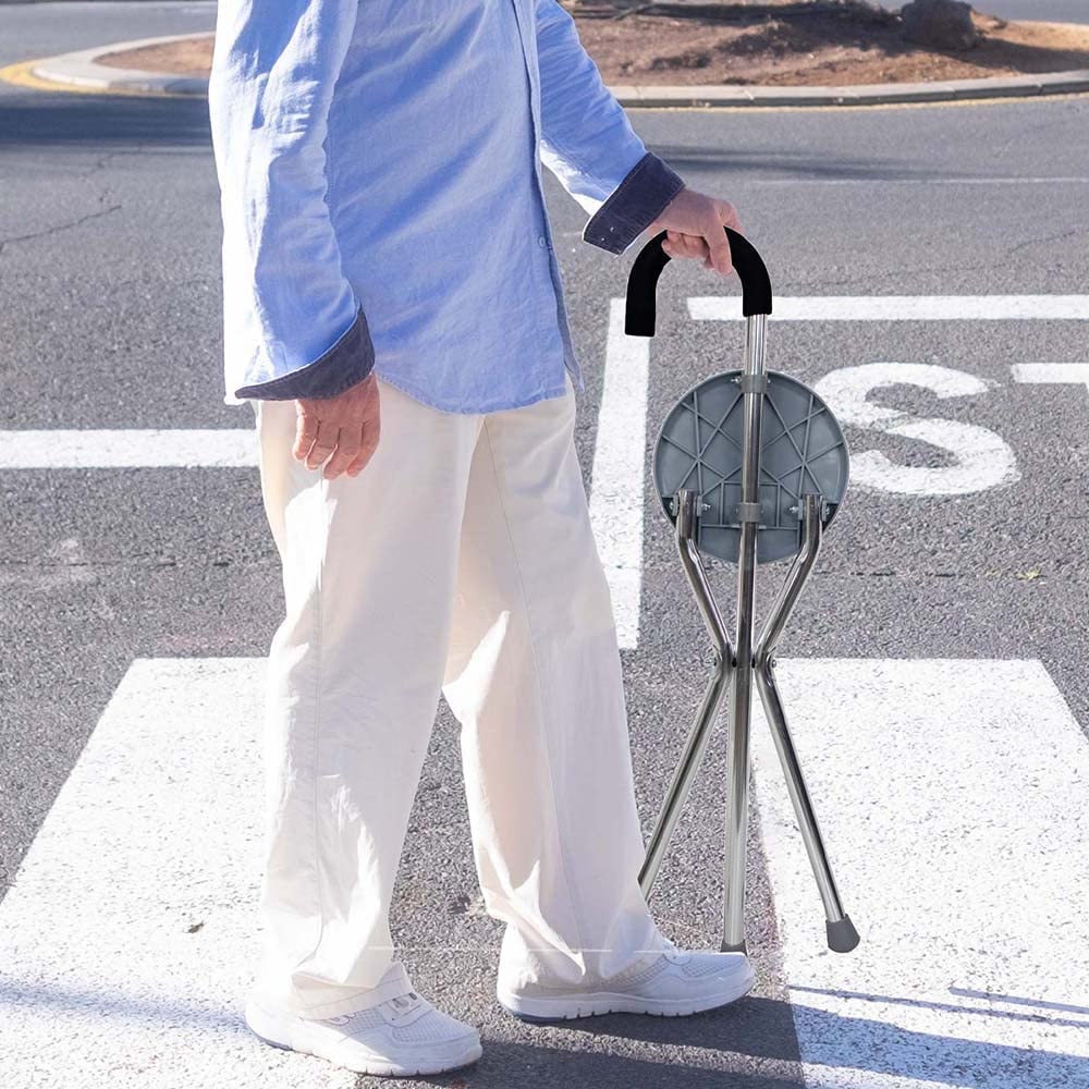 Este bastón con asiento de tres patas tiene la facilidad de ser transportado y almacenado de forma sencilla gracias a su mecanismo de plegado fácil. Podrá ser utilizado como silla para personas mayores o ancianos, para así poder caminar y descansar.