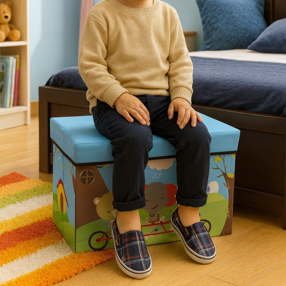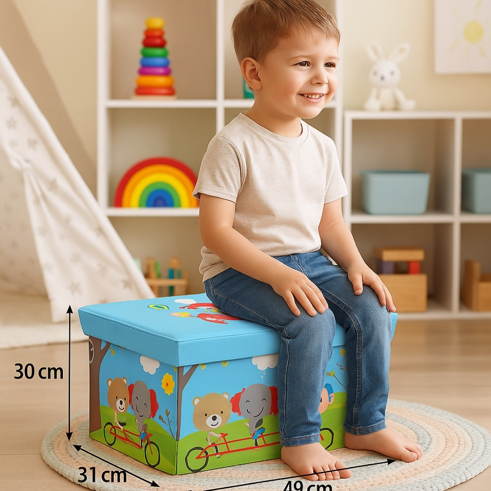 El baúl infantil plegable con asiento es la solución perfecta para mantener el dormitorio o la sala de juegos de los niños siempre ordenado y lleno de color. Su diseño práctico y multifuncional permite que se utilice tanto como un organizador de juguetes como un cómodo asiento, ofreciendo una doble funcionalidad ideal para espacios pequeños.