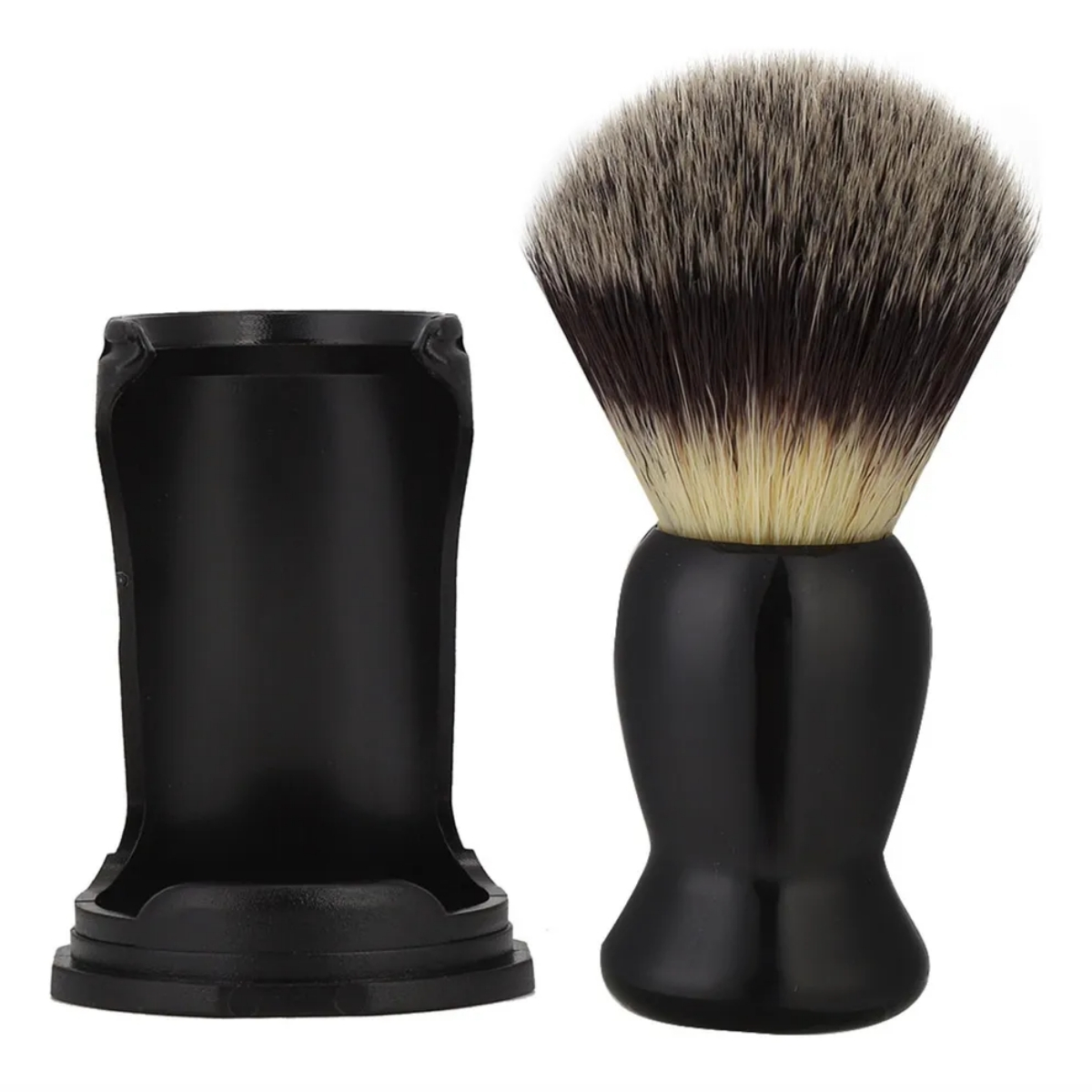 El set incluye un soporte práctico, ideal para mantener la brocha seca y en buen estado después de cada uso. Este detalle ayuda a prolongar la vida útil de las cerdas naturales y evita la acumulación de humedad o residuos de jabón.