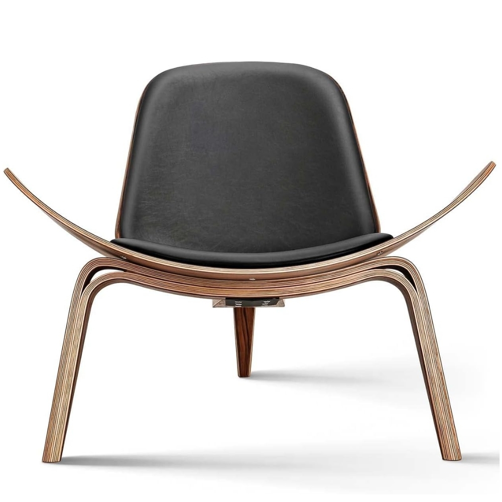 Butaca Shell Moderna de Madera Maciza con Cuero Sintetico Silla Estilo Eames Diseño Elegante y Cómodo Sillon Estilo Moderno Nordico color NEGRO