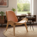 5 valoraciones en Butaca Shell Moderna de Madera Maciza con Cuero Sintetico Silla Estilo Eames Diseño Elegante y Cómodo Sillon Estilo Moderno Nordico