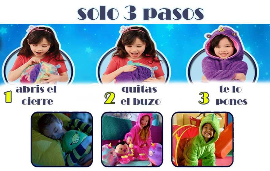 - Al abrir el Buzo Peluche Magico 2 en 1 Dinosaurio y como por arte de magia se transformara en en un excelente buzo y colorido con capucha.