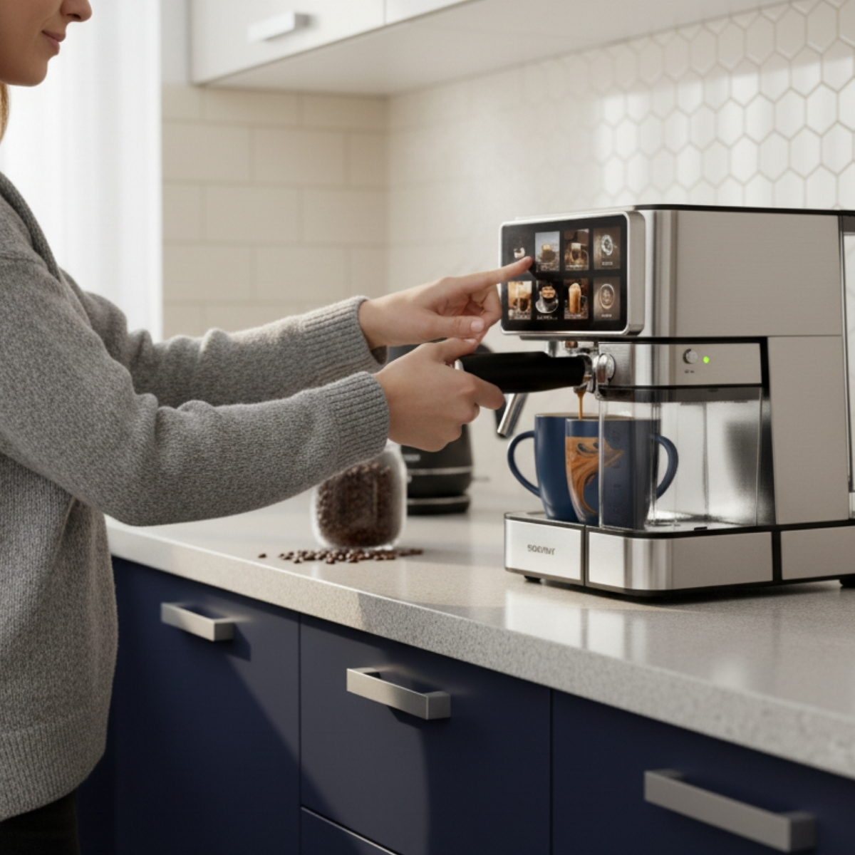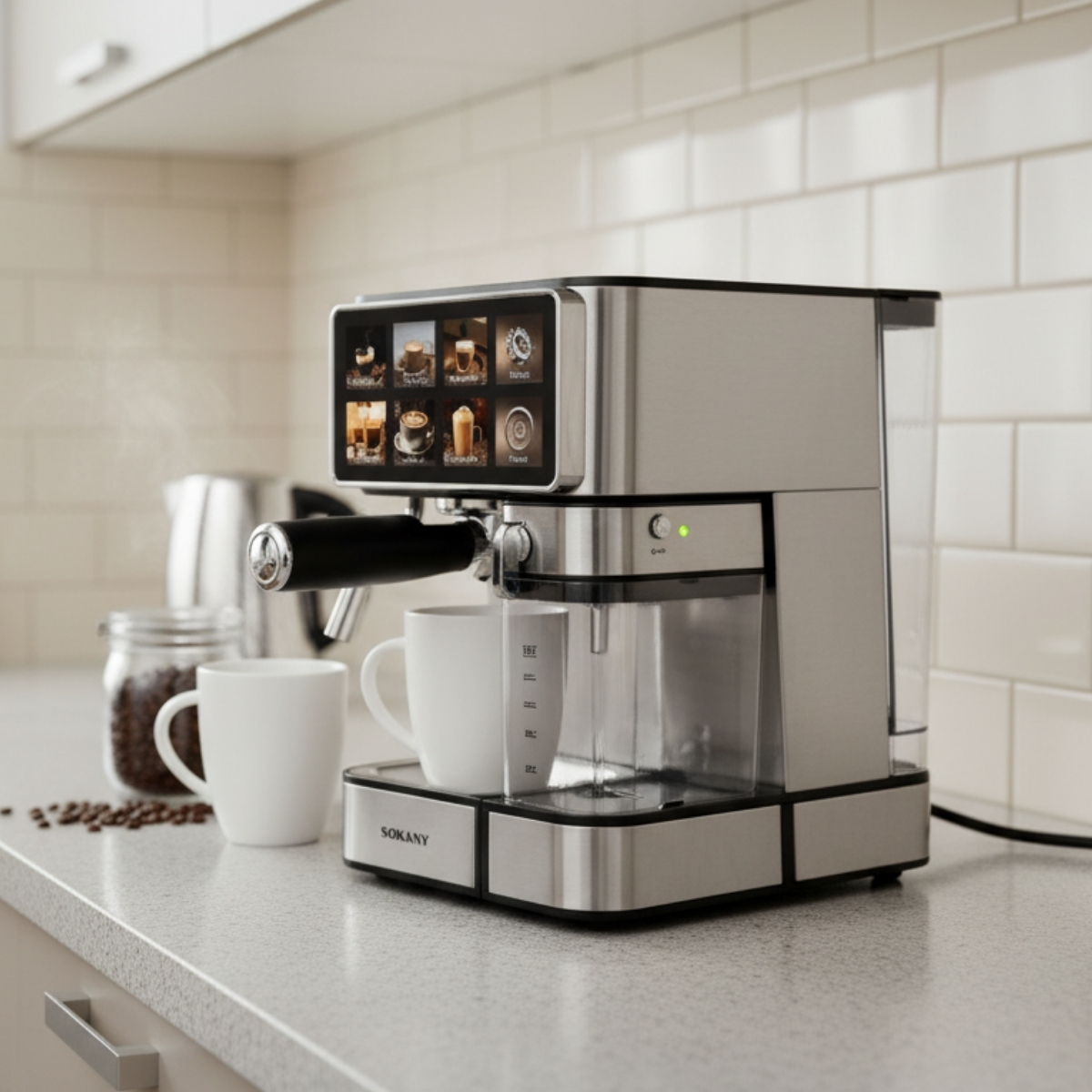5 valoraciones en Cafetera Expreso 1.8l 1800w 20bar Marca Sokany Capuchino Digital Táctil Con Deposito de Leche