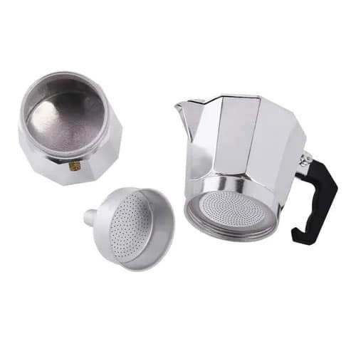 Cafetera italiana express que te permitirá tener un café de calidad todos los días, gracias a su fabricación en aluminio la distribución del calor se hace de manera más homogénea.