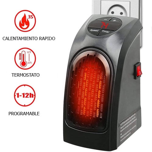 - Con conector schuko usted puede simplemente conectar en la toma corrientes y en un radio de 3 metros usted puede disfrutar de un calor agradable y es calefacción ventilador silencioso y bajo consumo.