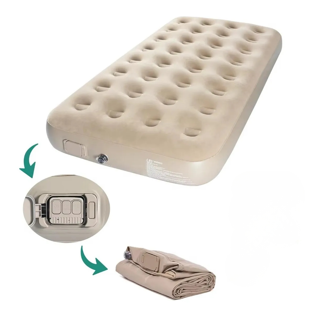La Cama Inflable Con Bomba Recargable USB Automática Con Funda De Almohada 100x190x25cm es perfecta para tus aventuras. Ideal para camping o visitas, es fácil de usar y transportar.