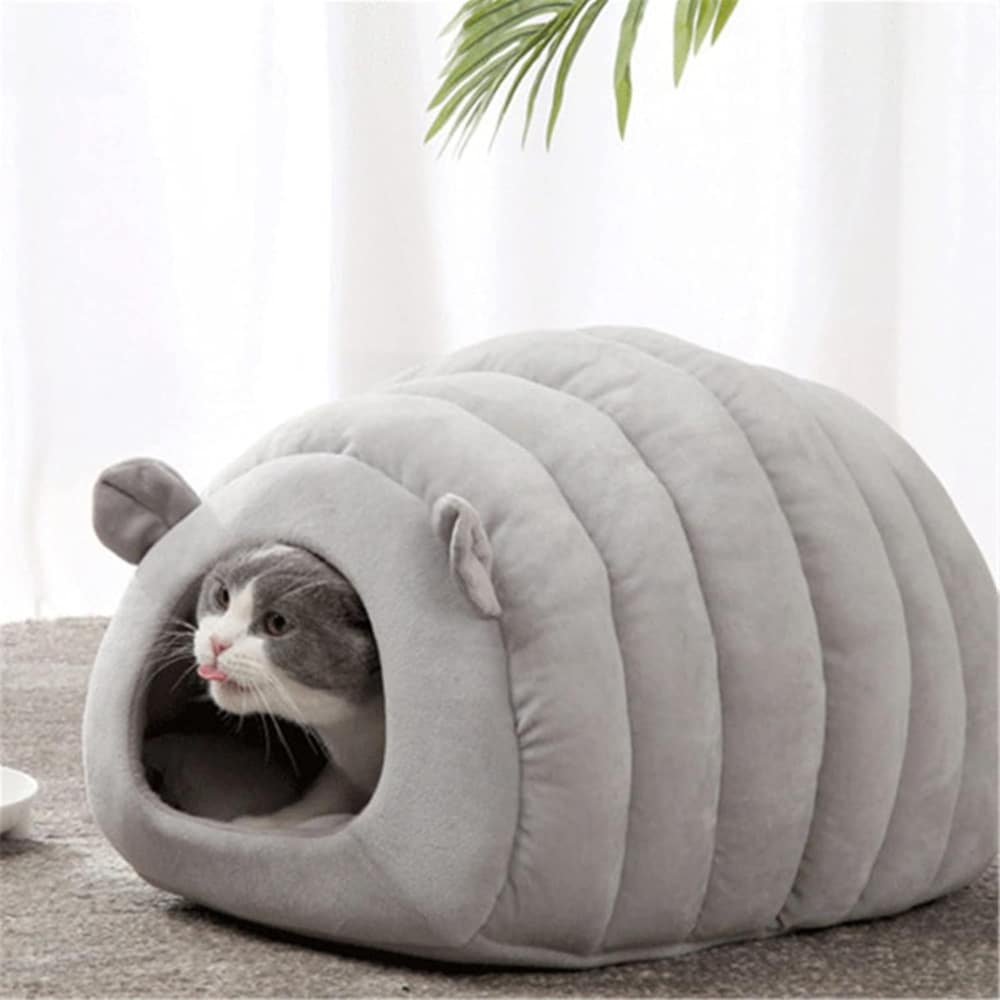 Su diseño tipo iglú o cueva no solo aporta una estética tierna, sino que también funciona como refugio térmico, conservando el calor corporal en los días fríos. Gracias a esto, los animales disfrutan de un descanso reparador, protegido del ruido y las corrientes de aire. Además, su tamaño compacto (40 x 35 x 35 cm) la hace ideal para espacios reducidos, sin comprometer el confort.