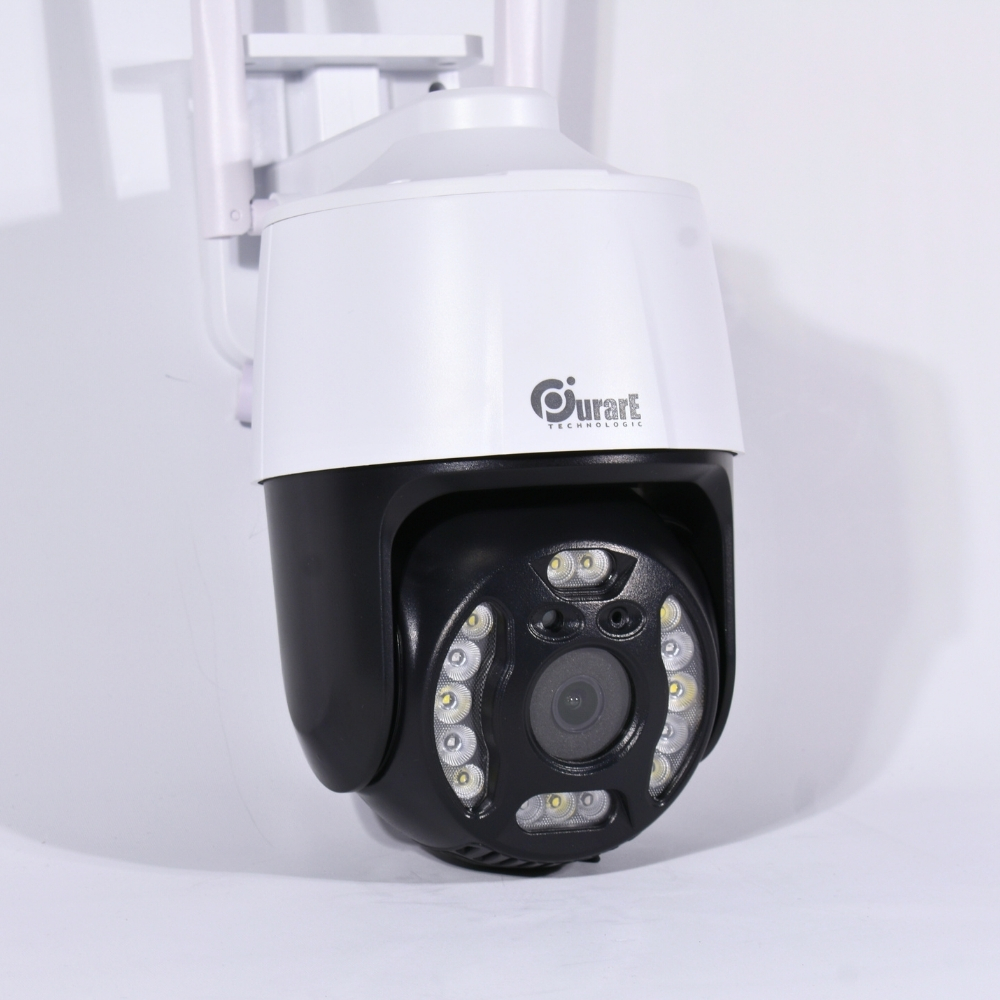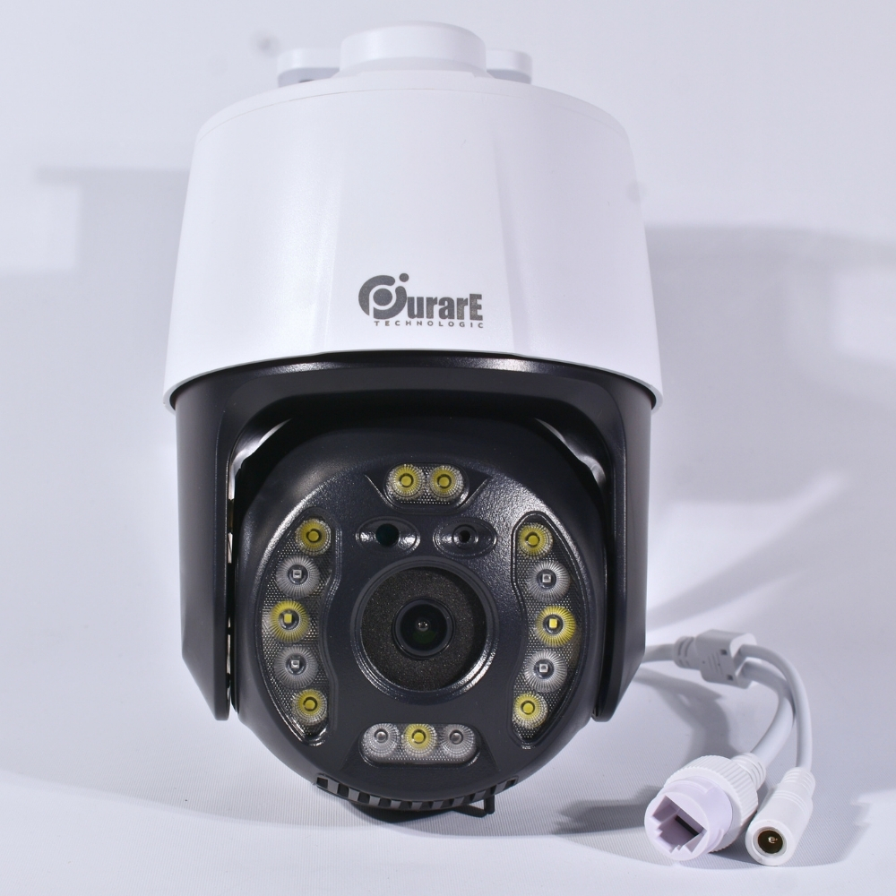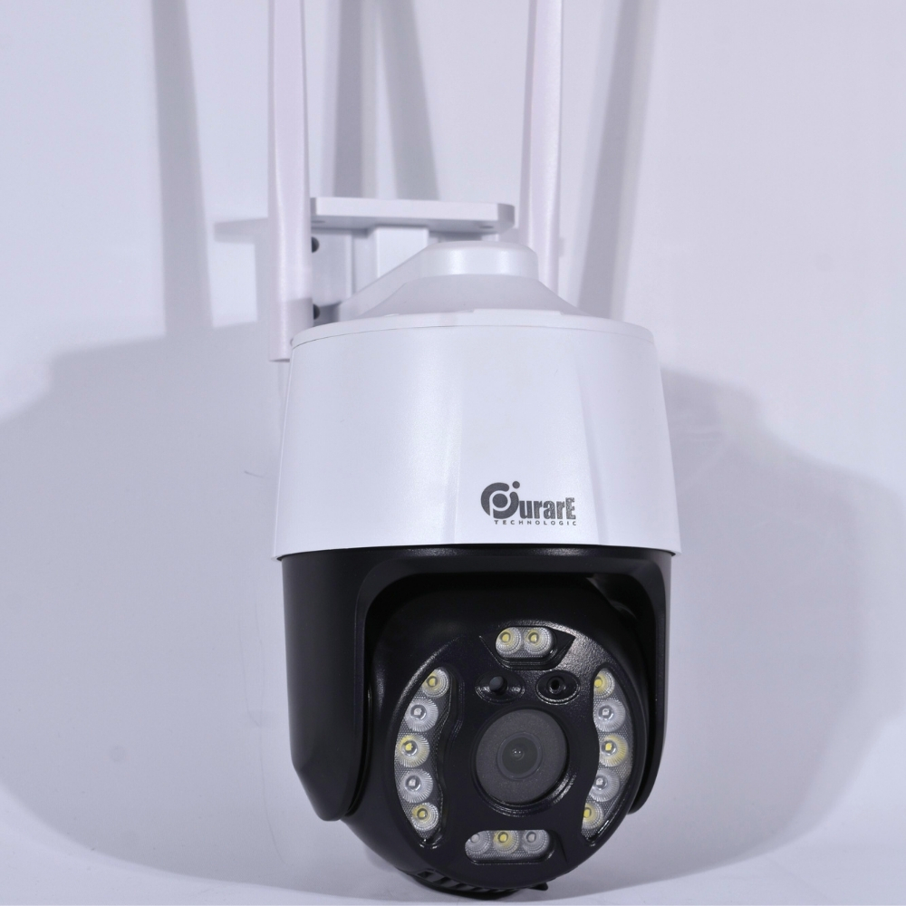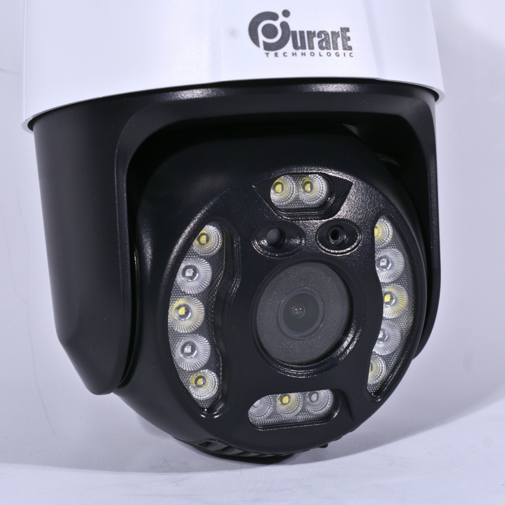Camara de Seguridad Exterior WiFi/LAN Purare Technologic Cronos 3MP Full HD PTZ 180°/350° Visión Nocturna 15 LED Audio Bidireccional