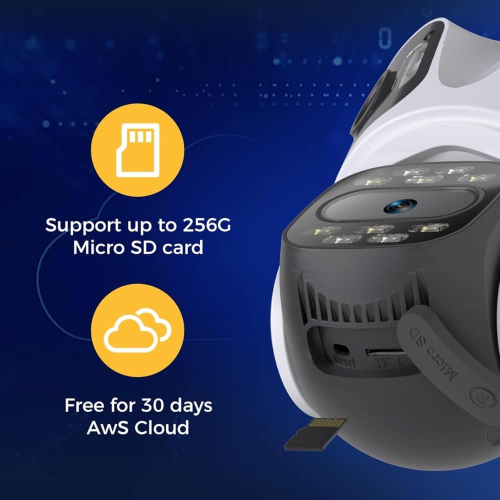 Esta cámara de seguridad exterior WiFi de 9MP ofrece una solución ideal para la vigilancia de hogares y negocios. Gracias a su triple lente, cubre un área más amplia, permitiendo monitorear cada rincón de tus espacios.