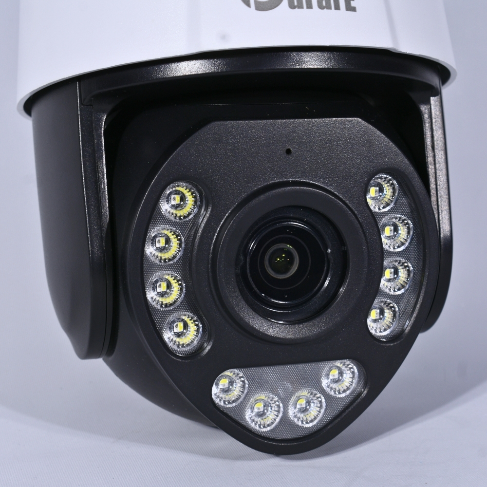 Su sistema PTZ robótico permite una rotación de 350° y un ángulo de visión de 180°, lo que asegura cobertura completa sin dejar puntos ciegos. Además, el zoom óptico 8X facilita el acercamiento a objetos o personas con la máxima nitidez, algo que no logran las cámaras con zoom digital.