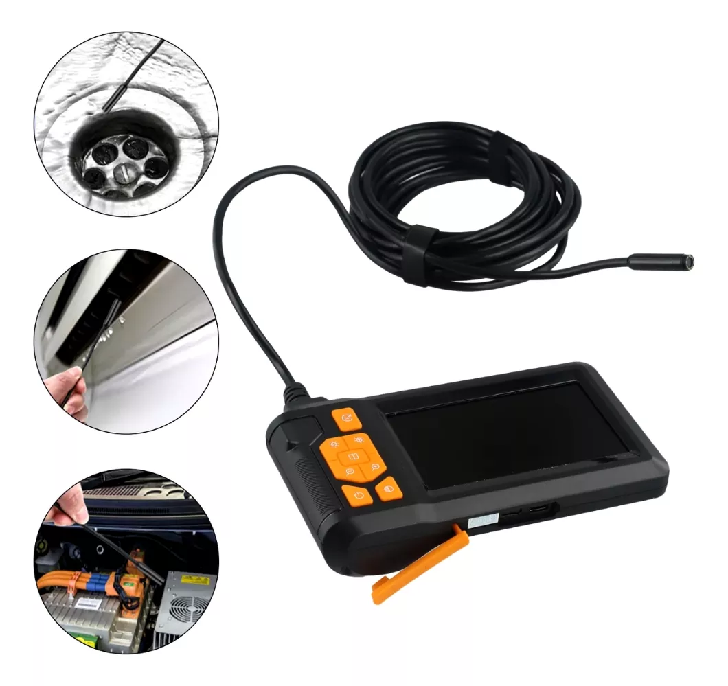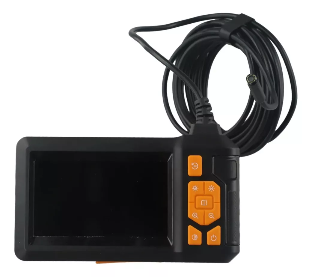 Este endoscopio industrial ofrece una experiencia de inspección clara y precisa, ideal para profesionales y aficionados. Con una pantalla de 4,3 pulgadas, luces LED ajustables y una cámara HD, podrás visualizar zonas de difícil acceso en alta definición. Su cable rígido moldeable de 2 metros permite maniobrar en espacios reducidos, mientras que su resistencia al agua IP67 hace que sea seguro en condiciones húmedas. Incluye una batería de 2000 mAh para un uso prolongado sin recargas frecuentes. Viene en color negro con botones naranjas.