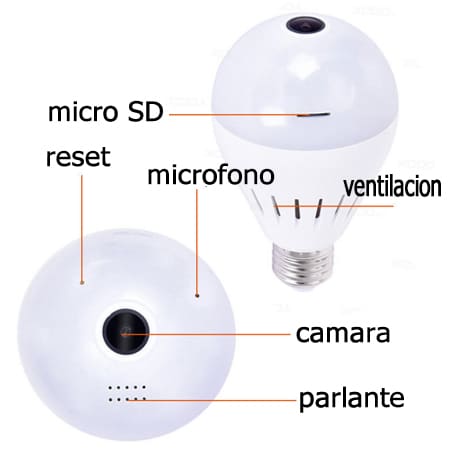 Camara Lampara Vigilancia 360 Panoramica Wifi IP Modelo HELIOS