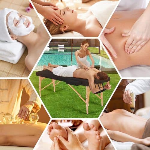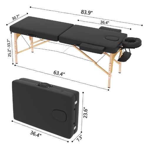 Cómoda camilla de masajes el asiento está relleno de una esponja suave y cubierto con cuerina de PVC duradera. El diseño único de la base de la camilla de masajes hace que sea muy estable y puede soportar más peso.