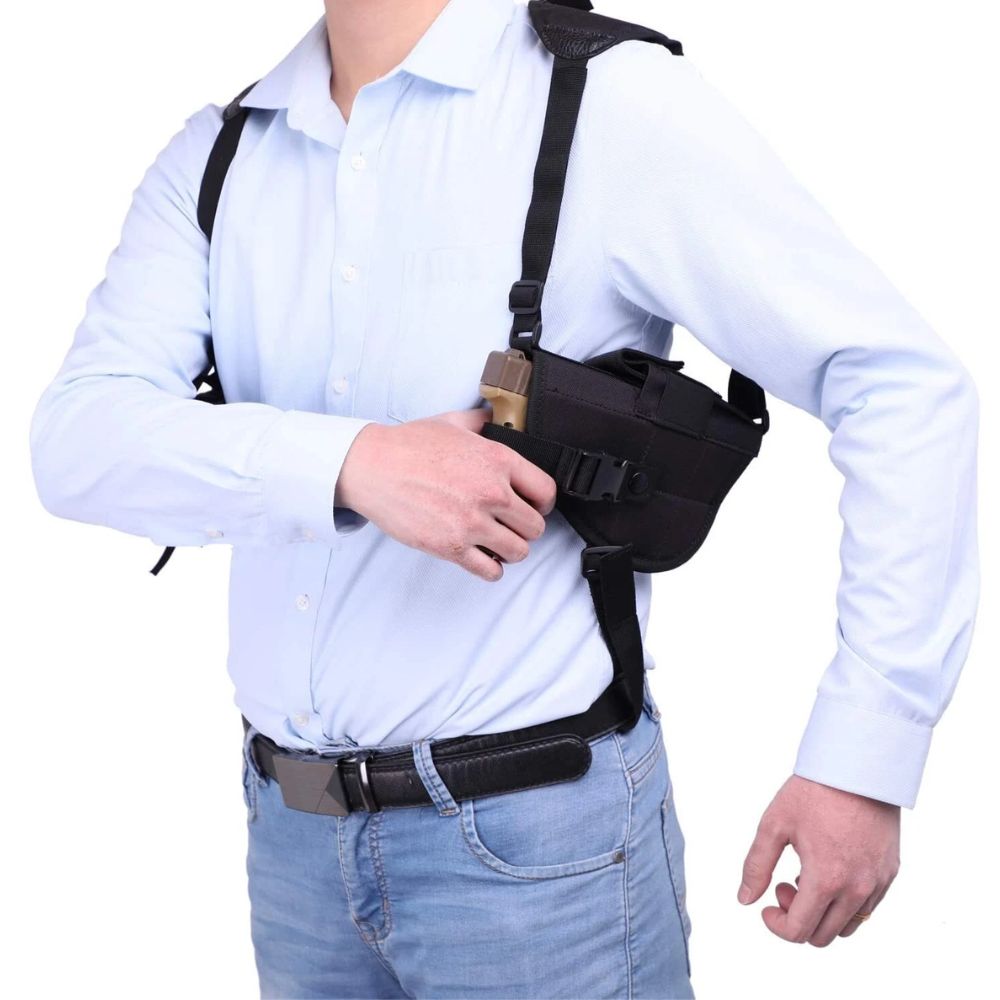 Canana Sobaquera Doble Universal Tactica Hombro Ajustable Nylon Porta Pistola Y Cargadores Mano Derecha