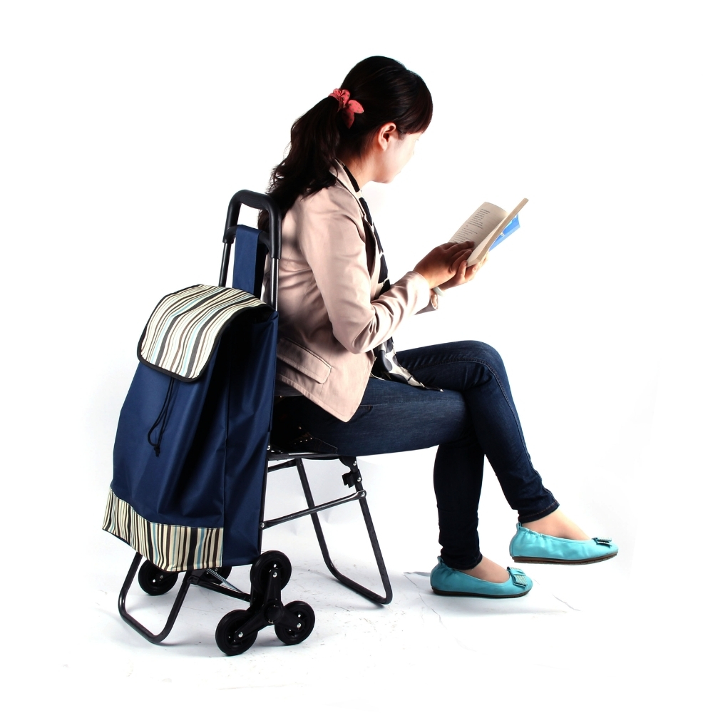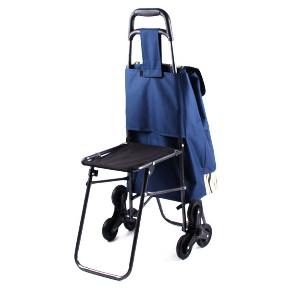 Carrito de Feria con Asiento Plegable 6 Ruedas para Escaleras Bolso Grande y Estructura de Hierro Liviana 93cm Apto para Personas Mayores Muy Comodo Asiento Resistente 80kg