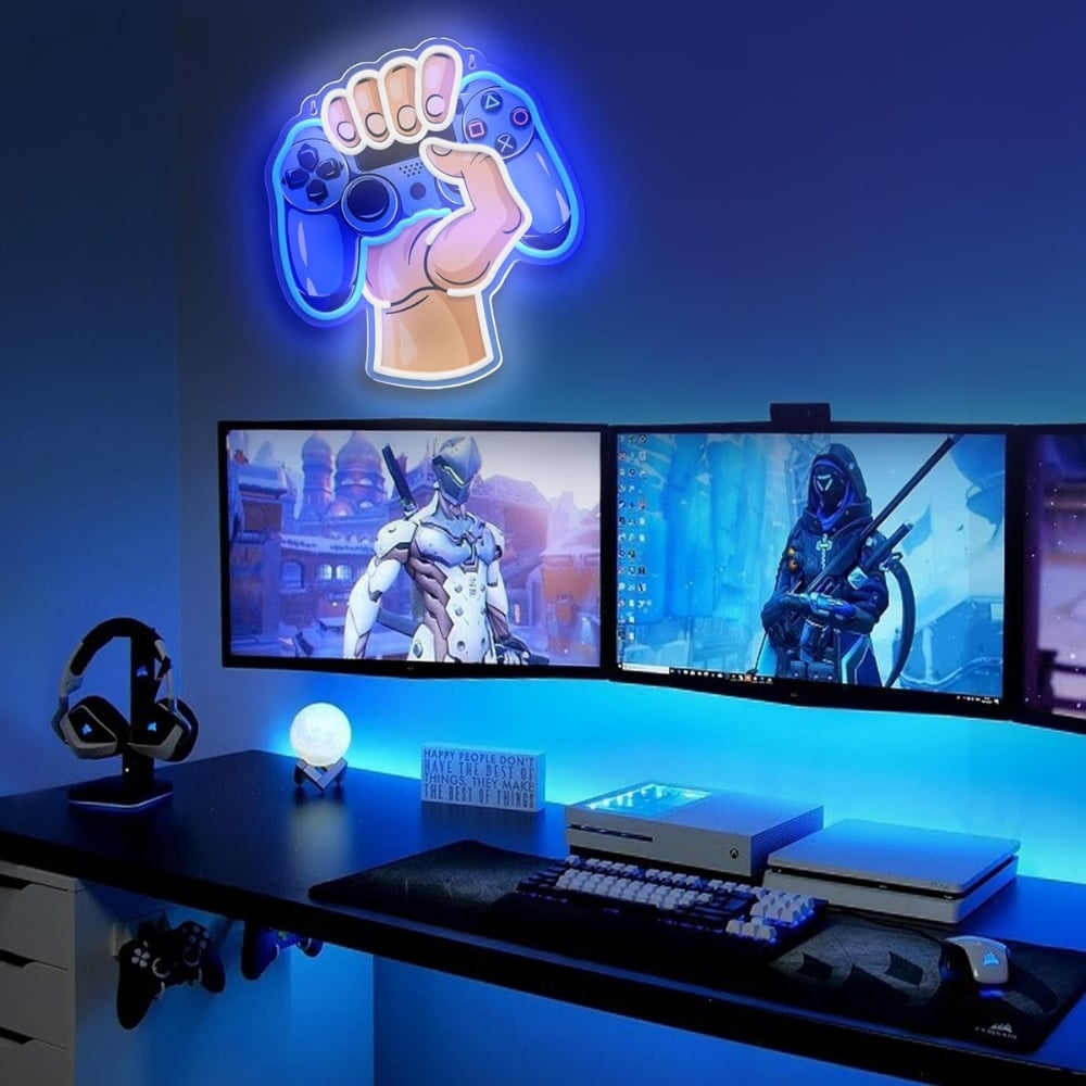 Si querés llevar tu setup gamer al siguiente nivel, este Cartel Acrilico de Neon LED Joystick 33cm es la opción perfecta. Con un diseño llamativo de una mano sosteniendo un joystick, es el complemento ideal para streamers, creadores de contenido y amantes de los videojuegos. Su luz azul y blanca crea un efecto visual impresionante, agregando personalidad y estilo a tu espacio.