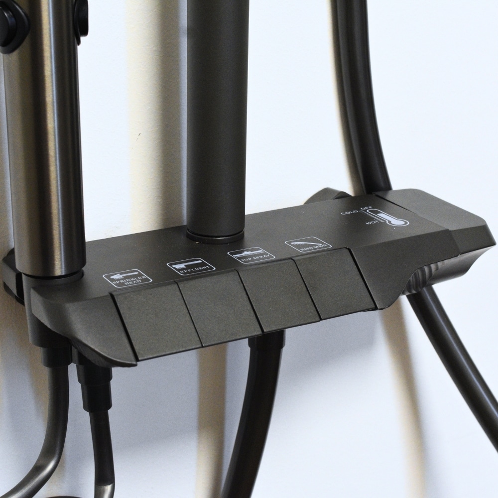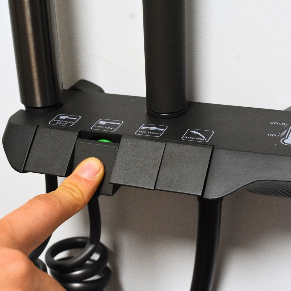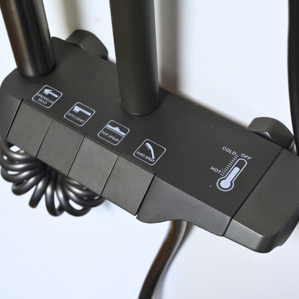 - Control intuitivo: Botonera ergonómica de 20,5 cm que permite seleccionar dónde saldrá el agua (superior, teléfono o cascada) y ajustar la temperatura con un deslizador práctico.