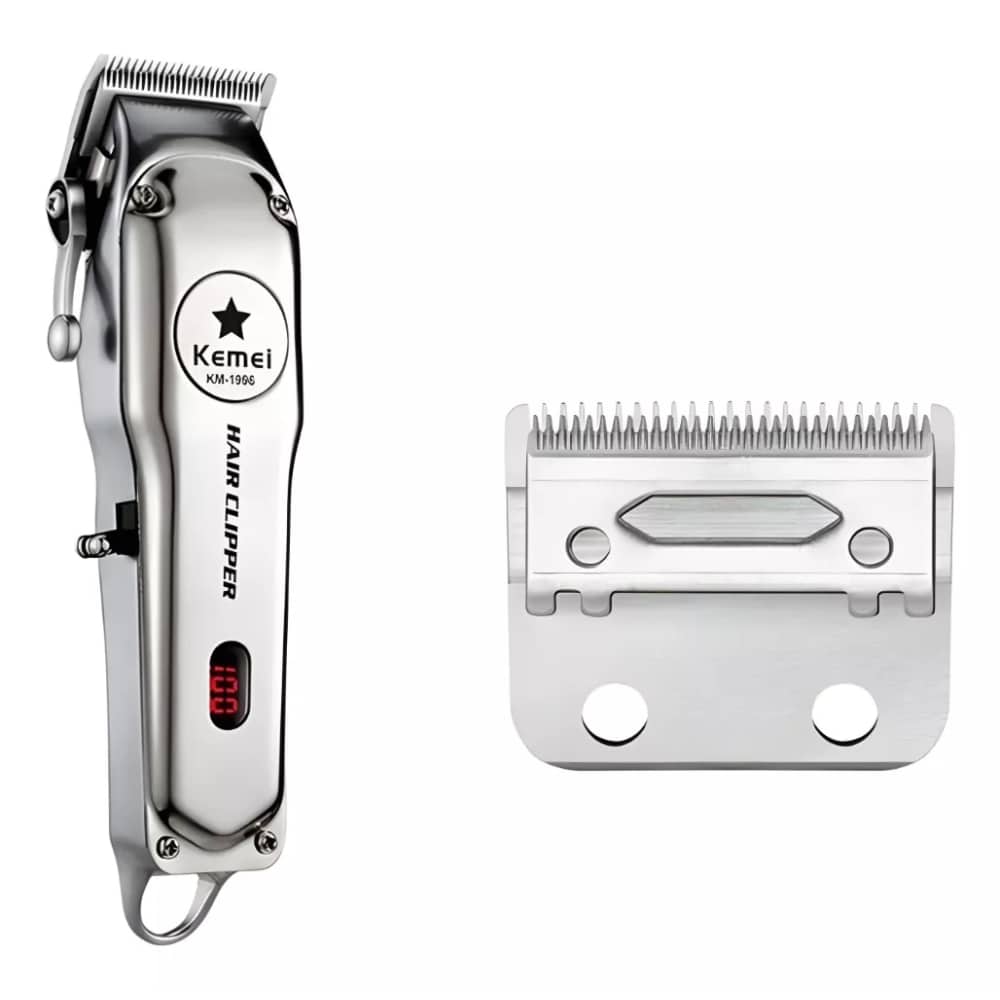 La Corta Pelo y barba KM-1996 Profesional de la marca Kemei es una herramienta indispensable para barberías, peluquerías o uso personal en casa.