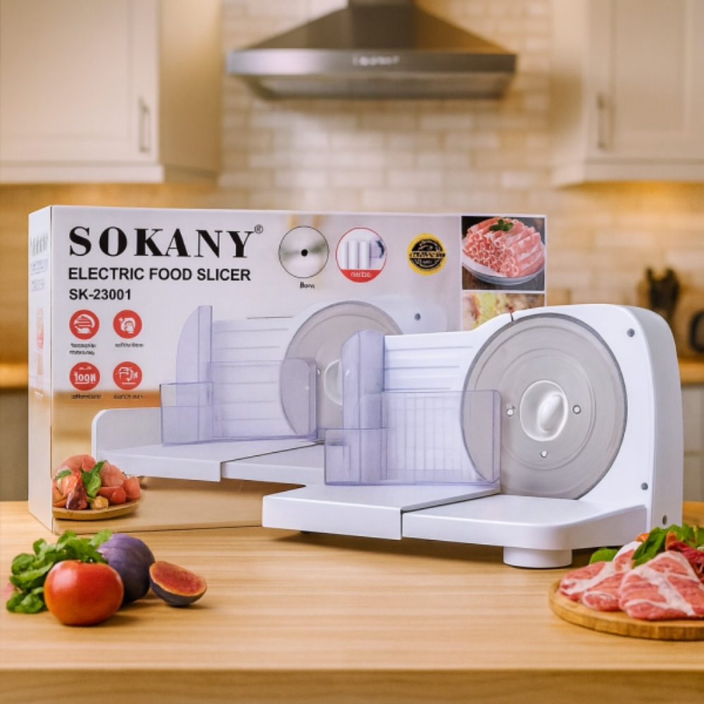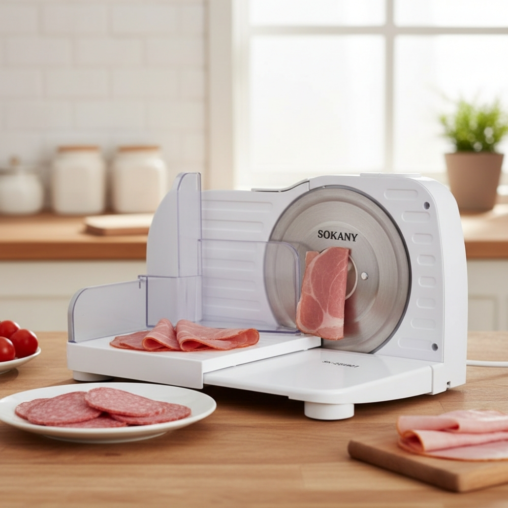 Cortadora Electrica Sokany Plegable SK-23001 150W Ajuste Grosor Cuchilla 17cm Cocina