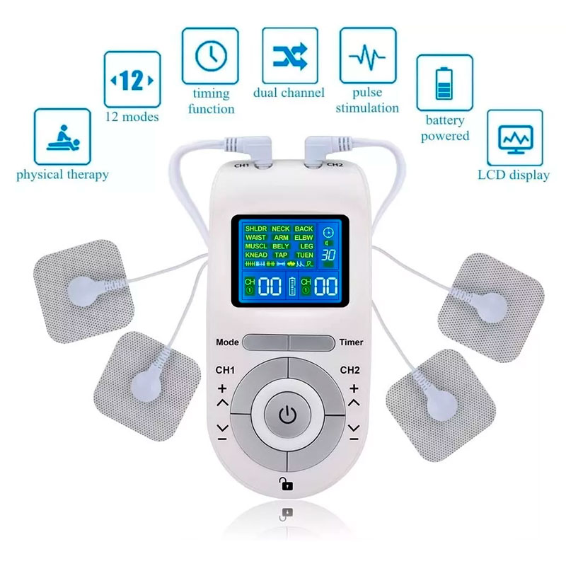 Electroestimulador Portatil Tens Masajeador 4 Parches