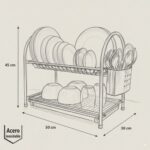 - Escurreplatos de dos niveles para cubiertos, utensilios, vasos y platos. De acero inoxidable.
