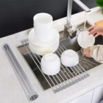 - Multiusos para ti: este estante enrollable se desenrolla por encima de un fregadero abierto para platos lavados de secado al aire, para espacio adicional en encimera o como remache. Escurreplatos de verduras y frutas, estantes de cocina ideales para mostrador.