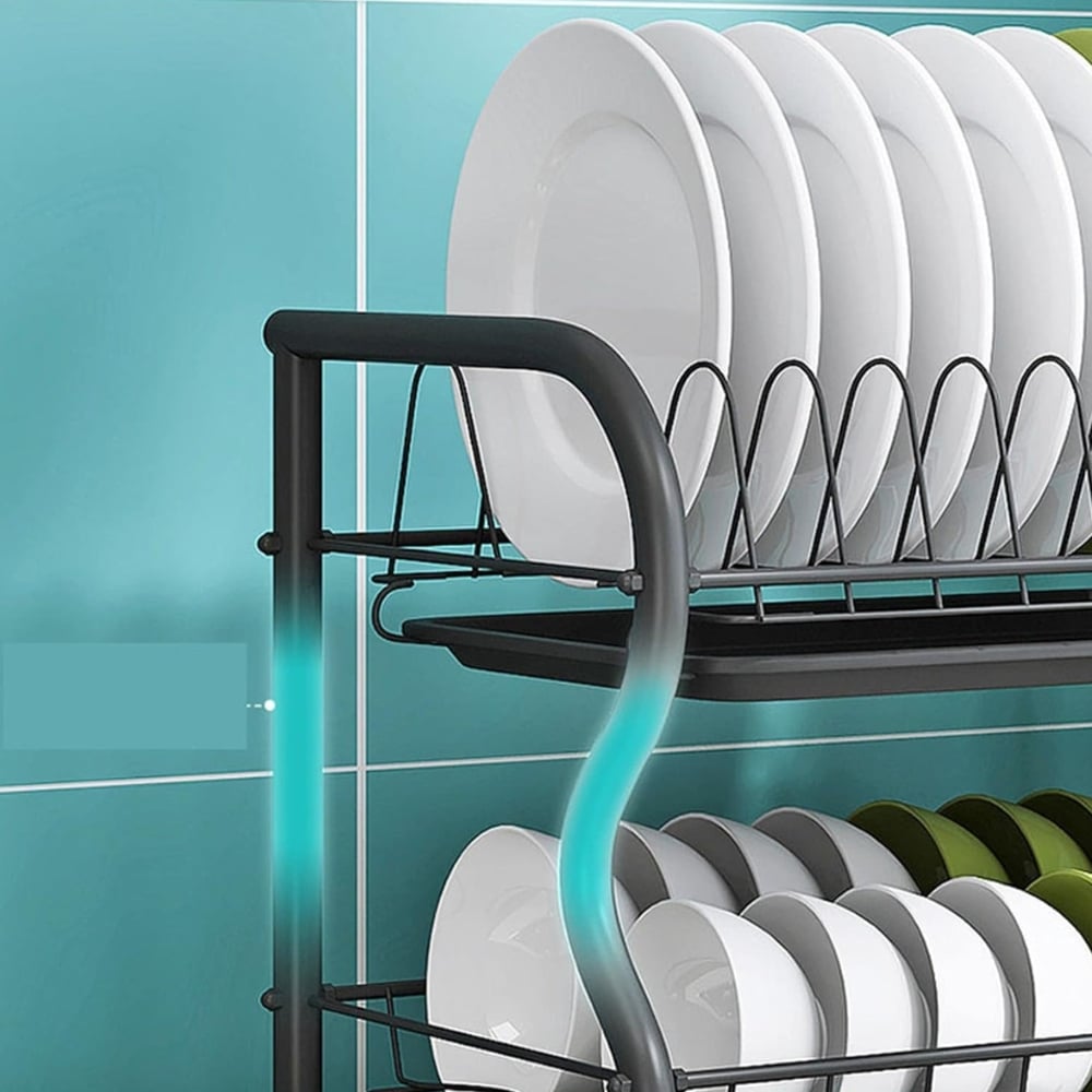 Este escurridor de platos de 3 niveles es la solución ideal para mantener tu cocina ordenada, limpia y con estilo. Fabricado en acero inoxidable resistente y pintado en un elegante color negro, combina funcionalidad con diseño moderno. Es apto para todo tipo de cocinas y permite optimizar el espacio en la encimera.