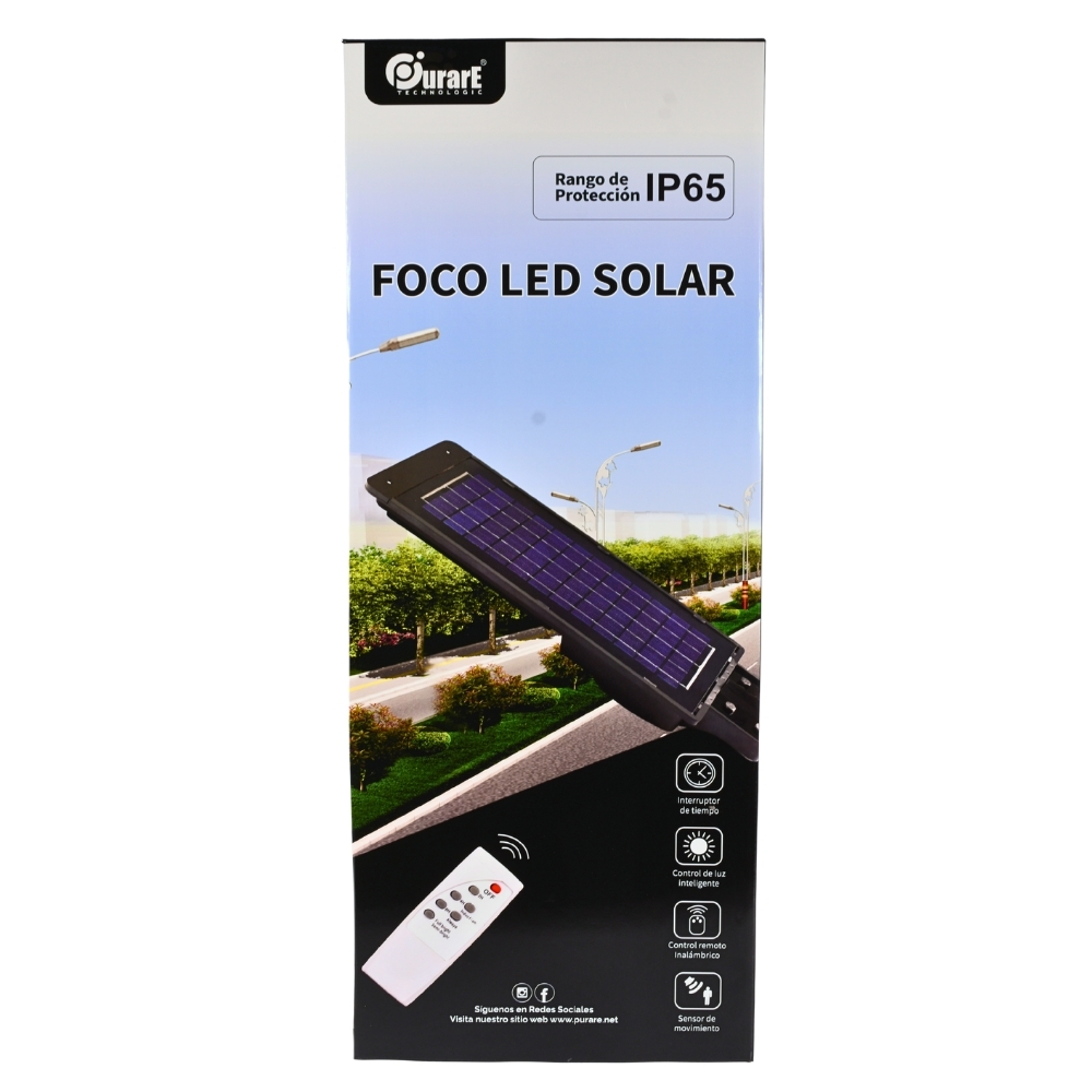 1 valoración en Foco Solar Exterior LED 120W con Panel Integrado, Control Remoto, Sensor de Movimiento, Fotocélula Luz Led 120w Potencia Luz Fria – Purare Technologic