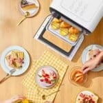 Este 5 en 1 tiene un enchufe Shuko, una frecuencia de 50-60Hz y funciona con un voltaje de 220V, por lo que es compatible con la mayoría de los hogares. Sus dos bandejas y rejilla de grill permiten realizar diferentes preparaciones simultáneamente.