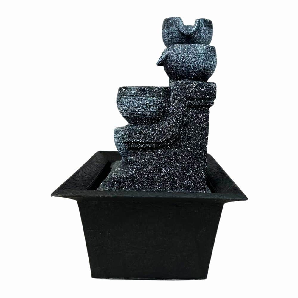 La fuente de agua de 4 cestos con luz LED es perfecta para crear un ambiente relajante y elegante en cualquier espacio. Con una altura de 22 cm, su diseño en cascada distribuye el agua a través de los cestos, generando un suave y relajante sonido que invita a la tranquilidad. La luz LED integrada añade un toque moderno y cálido, resaltando el efecto del agua en movimiento.