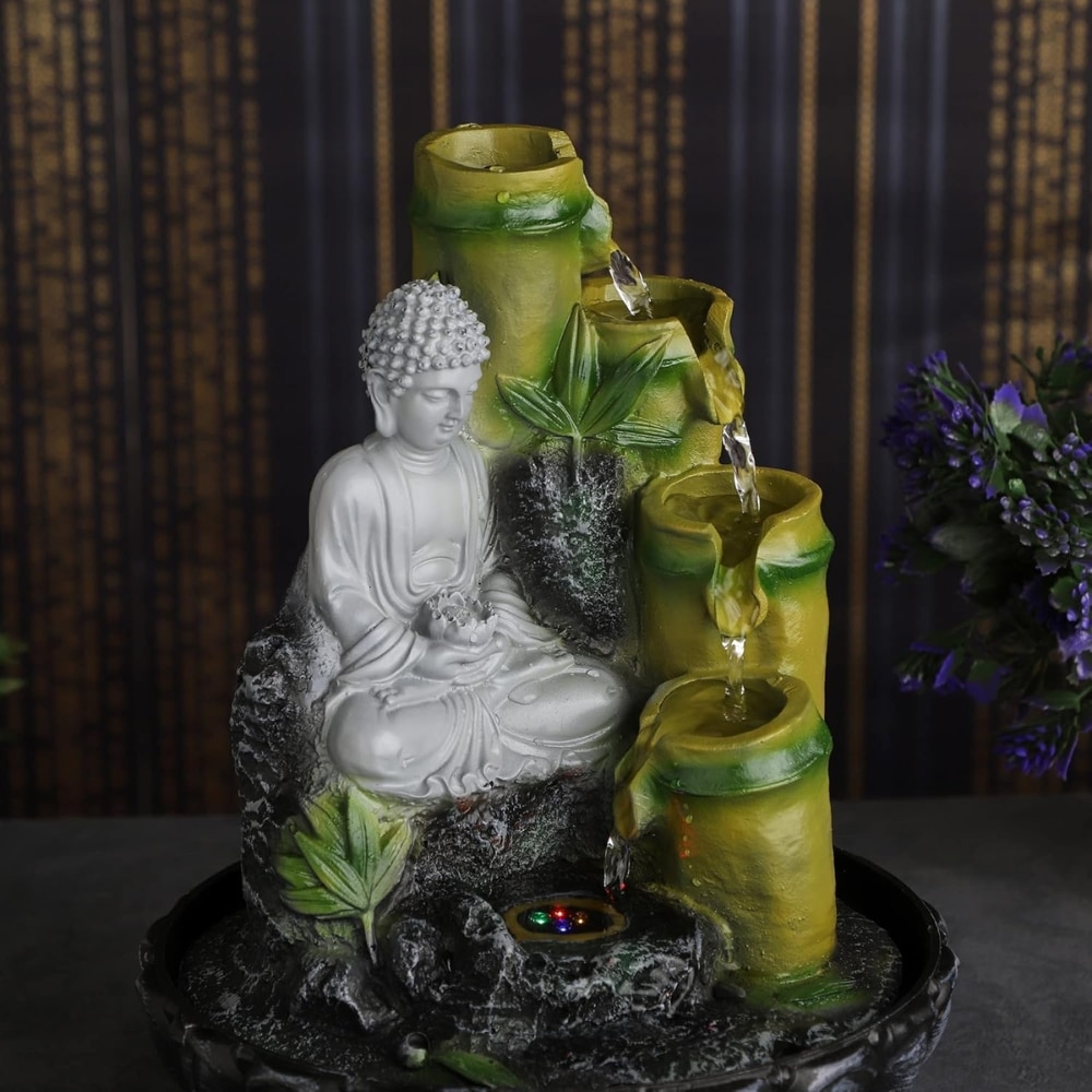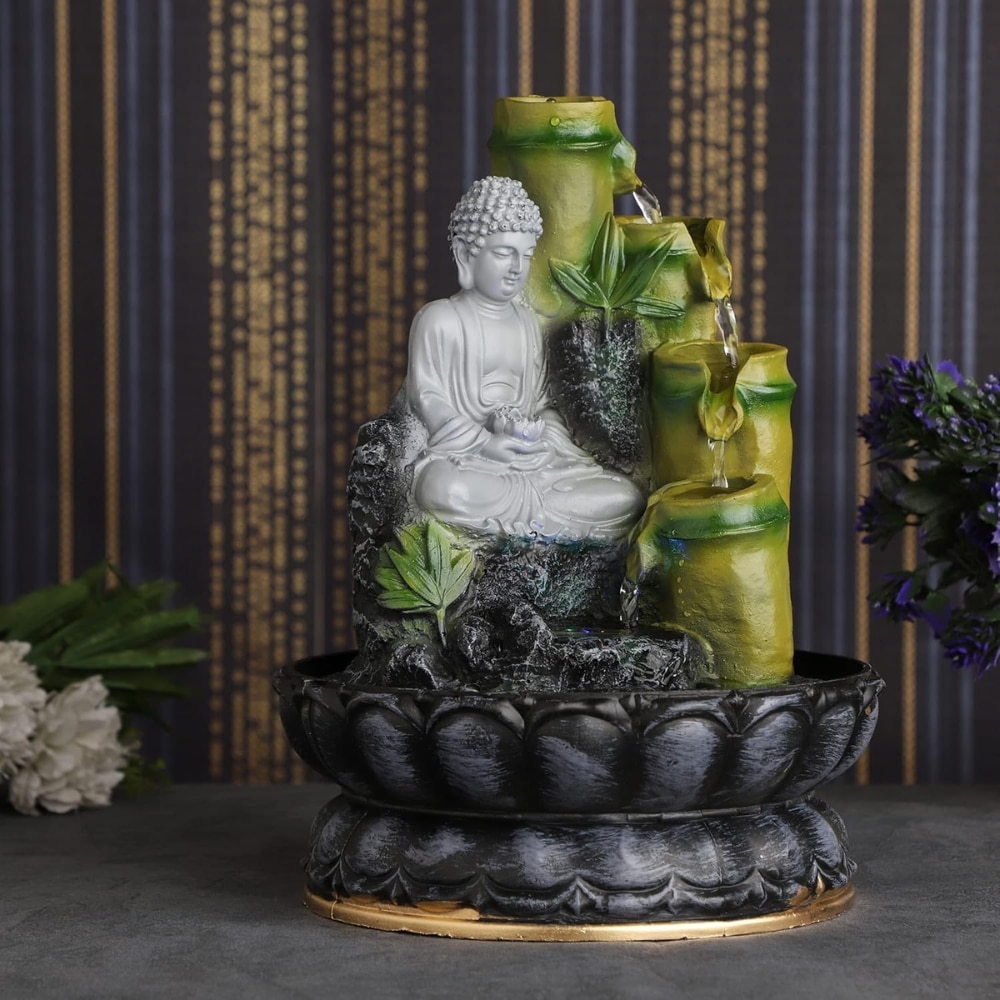 Ideal para decoraciones minimalistas, espacios zen, o para cualquier amante del budismo que busque una fuente de agua que combine estética y funcionalidad.