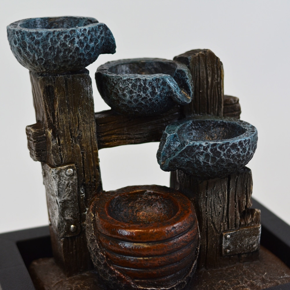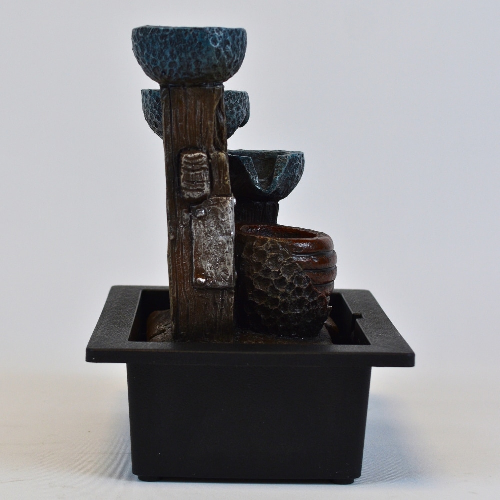 Fabricada con materiales de alta calidad, pesa aproximadamente 1 kg, lo que le da una estabilidad perfecta para funcionar de manera continua. La fuente incluye una bomba de agua que se conecta a 220V, así que solo necesitas un enchufe cercano para disfrutar de su calma.